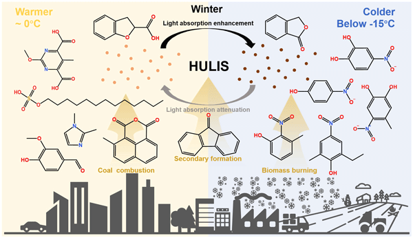 The impacts of pollution sources and temperature on the light absorption of HULIS were revealed by UHPLC-HRMS/MS at the molecular structure level