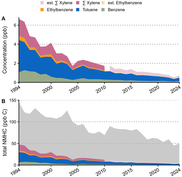 Measurement report: 30 years of BTEX monitoring at a suburban site in Switzerland supported by additional urban VOC observations