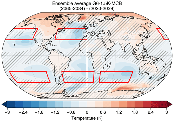 Marine cloud brightening (MCB) is a proposal to emit sea salt aerosols to make clouds more reflective and cool the climate. Here, we use three climate models to study a hypothetical future where MCB is used to maintain temperatures near 2020–2039 conditions. The simulation results indicate that using MCB in midlatitude ocean regions can keep the climate close to present day conditions. This reduces many of the negative impacts shown in previous studies, informing future modeling efforts.