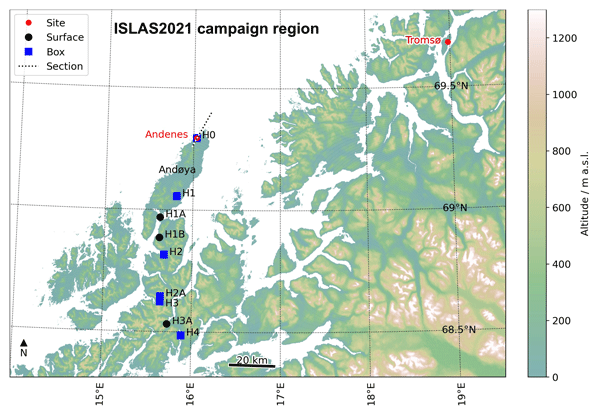 During a recent field campaign from 15 to 30 March 2021 at Andenes, Norway, we collected a set of observations that allows to better constrain how clouds and precipitation processes work. Frequent alternations between mid-latitude and arctic weather systems were encountered during the campaign. Our dataset is unique in combining measurements in both vapour and precipitation, aerosols, ice nucleating particles, and was made simultaneously at different elevations at a high latitude location.