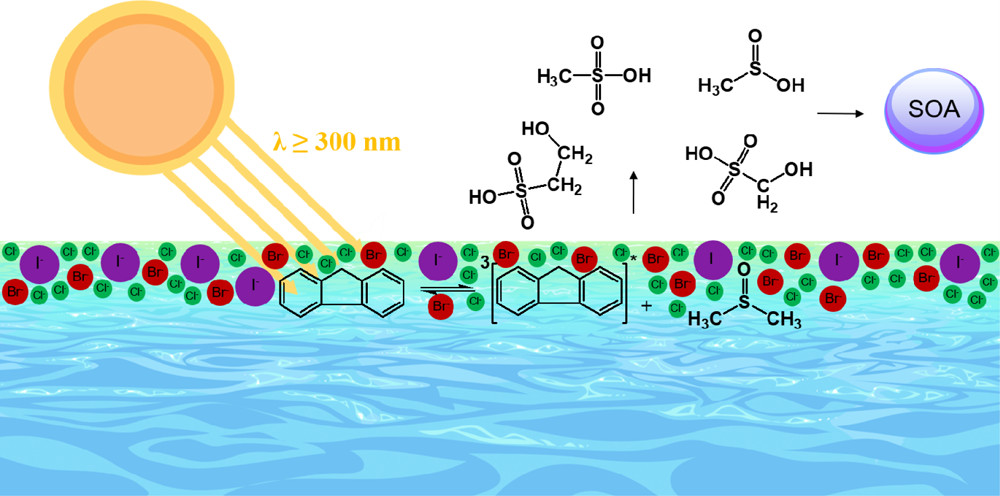 PAHs are ubiquitous compounds at the ocean surface. Although many efforts have been made to reduce the emission of PAHs, their concentrations in the aquatic environment remain high (Ravindra et al., 2008; Keyte et al., 2013). The primary emitted PAHs are deposited into the surface waters via atmospheric deposition (Ma et al., 2013). It has been shown that PAHs play an important role in the photochemical processes of the SML. Fluorene (FL), for example, can act as a photosensitizer at the sea surface while irradiated by sunlight and initiate photochemical formation of toxic compounds and a wide variety of functionalized and unsaturated organic compounds in both the aqueous phase and gas phase (Mekic et al., 2020b). The photosensitized reaction between triplet states of PAHs (pyrene, fluoranthene, and phenanthrene) and dimethyl sulfoxide (DMSO) in the sea surface layer has recently been identified as a source of organic sulfur compounds such as ethylsulfonylmethane, ethyl methanesulfonate, methanesulfonic acid, methanesulfinic acid, hydroxymethanesulfonic acid, and 2-hydroxyethanesulfonic acid in the marine atmosphere (Mekic et al., 2020c, b).