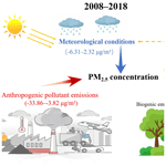 Current research primarily emphasizes the impact of anthropogenic pollutant emissions (Zheng et al., 2018) and meteorological changes on PM2.5 concentrations (Zhang et al., 2019; Zhai et al., 2019), while the potential influence of CO2 concentration changes on PM2.5 pollution levels remains largely underexplored. Additionally, following the implementation of the Clean Air Action Plan in 2013, significant decreases in PM2.5 concentrations were observed in China. Concurrently, CO2 levels continued to rise (Xu et al., 2022), with the influence of CO2 on PM2.5 strengthening annually. Therefore, it is essential to analyze the evolution of PM2.5 concentrations from 2008 to 2018 in detail, and attribute changes in PM2.5 levels to every factor, such as anthropogenic pollutant emissions, meteorological conditions, and CO2 variations.