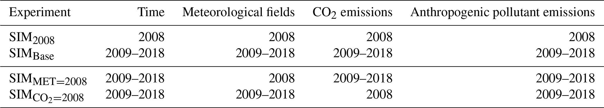 It is noteworthy that, as a principal greenhouse gas, CO2 modifies meteorological parameters – such as radiation, temperature, and precipitation – which in turn influence PM2.5 levels. In the comparison between experiments SIMBase and SIM (SIM), all meteorological changes derive solely from variations in CO2 emissions, a mechanism fundamentally different from the meteorological influences identified in experiments SIMBase and SIMMET=2008 (SIM).