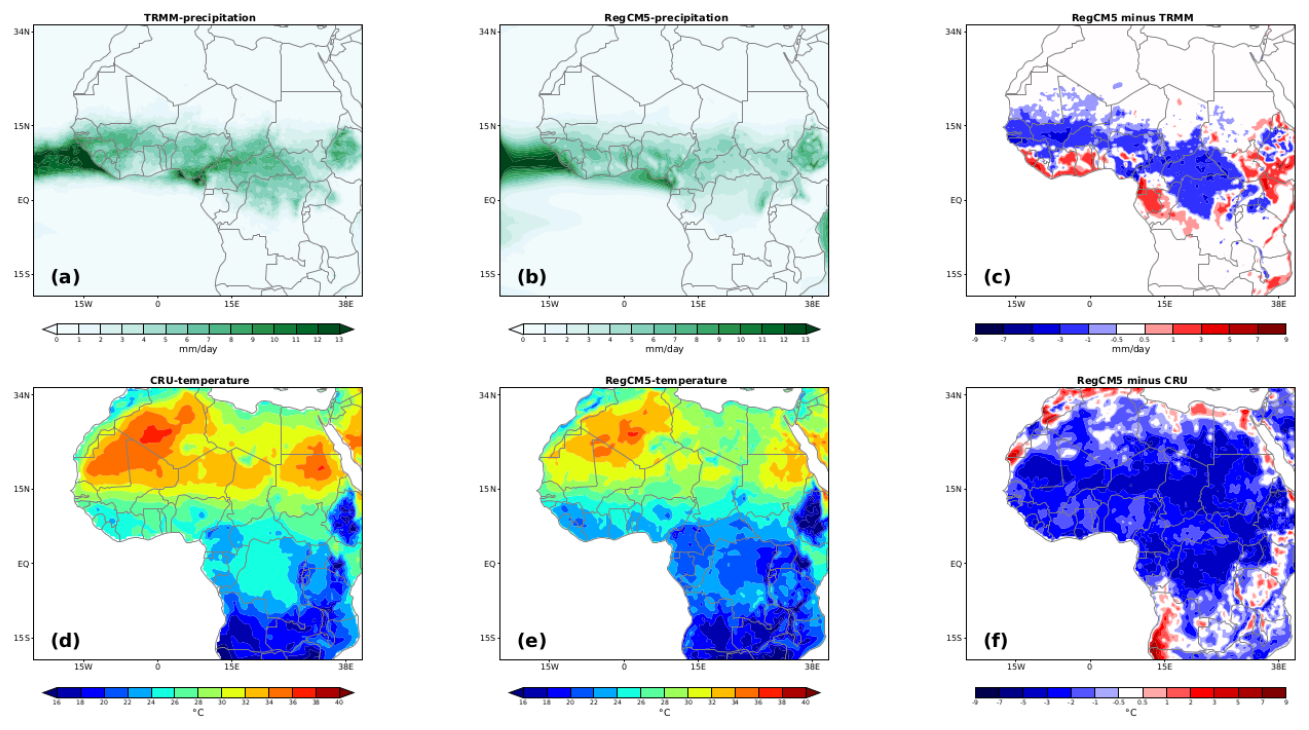 Additional details on the distribution of daily temperature and precipitation intensities over the Sahel region are provided in the Supplementary Information (Fig. S2), using Probability Density Functions (PDFs) compared to ERA5 and TRMM respectively. These support the model’s reasonable performance on daily-scale variability.