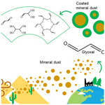 The study by Shen et al. (2016) revealed that glyoxal can also uptake onto synthetic minerals proxies of natural mineral dust, forming oligomers, organo-sulphates, formic acid, and glycolic acid, henceforth suggesting a potential significant mechanism for organic aerosol formation and modification of the optical and hygroscopic properties of mineral dust. Recently, Zogka et al. (2024) highlighted the dependence of the soil composition and size for the uptake of glyoxal on soils and soil surrogates (synthetic mineral).