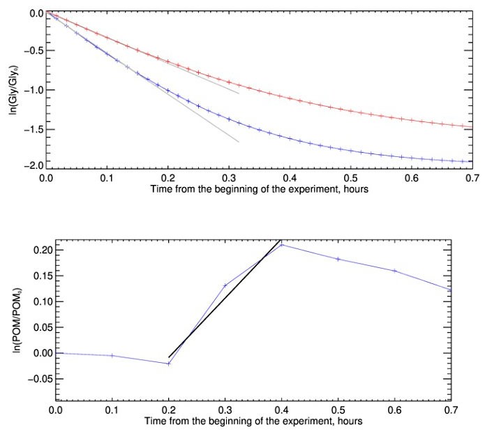(7) k het = ln [ Gly ] 0 [ Gly ] obs - ln [ Gly ] 0 [ Gly ] loss t