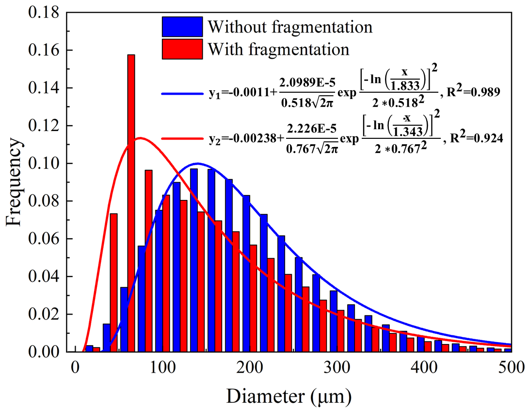 As shown in Fig. 11c, the fragmentation is significant under the same mean averaged diameter when the large particles take a higher proportion in a granular system. The fragmentation number of snow particles with different particle size distribution increases almost linearly with time. This is because, if there are only snow particles with a larger size than the threshold diameter, more snow particles will join the fragmentation.