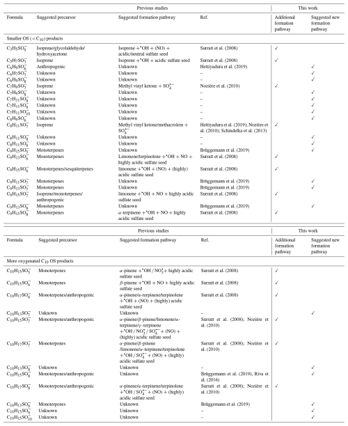 Brüggemann, M., Xu, R., Tilgner, A., Kwong, K. C., Mutzel, A., Poon, H. Y., Otto, T., Schaefer, T., Poulain, L., Chan, M. N., and Herrmann, H.: Organosulfates in Ambient Aerosol: State of Knowledge and Future Research Directions on Formation, Abundance, Fate, and Importance, Environ. Sci. Technol., 54, 3767–3782, https://doi.org/10.1021/acs.est.9b06751, 2020.