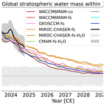 To isolate the effects of volcanic aerosols from those of H2O, additional H2O–only injection simulations were conducted. Three models (MIROC–CHASER–fs–H2O, GSFC2D–H2O, and CMAM–fs–H2O), performed these simulations.