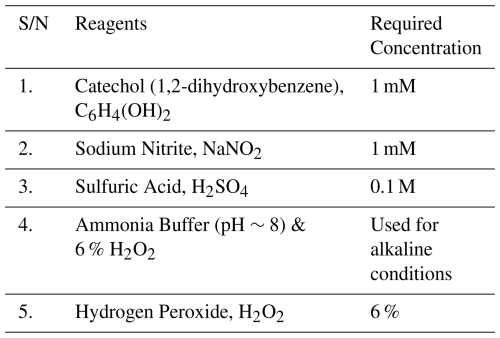 Table 1List of required reagents for the laboratory experiments to study the formation of nitro-aromatic compounds.