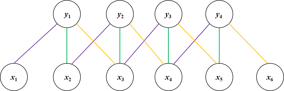 One-dimensional convolutional neural networks (1D-CNN) have significant theoretical advantages and practical value in processing time series data. The core mechanism relies on local connectivity and weight sharing, where each neuron is connected only to a local region of the input data, while the convolution kernel weights are shared across the entire input sequence. This design significantly reduces the number of model parameters, improving computational efficiency while effectively mitigating overfitting problems. Moreover, 1D-CNN achieves translational invariance through convolution and pooling operations, ensuring robustness to input data translations and enabling stable capture of key patterns in time-series data. Crucially, 1D-CNN possesses automatic feature extraction capabilities, allowing the model to independently learn and extract multi-level feature representations from raw data through end-to-end training, thus reducing dependence on manual feature engineering. As illustrated in Fig. 2, the input sequence x1∼x6 undergoes convolution operations to generate feature mappings y1∼y4, with purple, green, and yellow connections linking the input layer to the convolution layer. Each connection maintains its distinct weight value, with connections of the same color sharing identical weights. By stacking multiple convolutional layers, the model progressively learns higher-level feature representations, offering robust expressive capabilities for time-series data modeling and prediction.