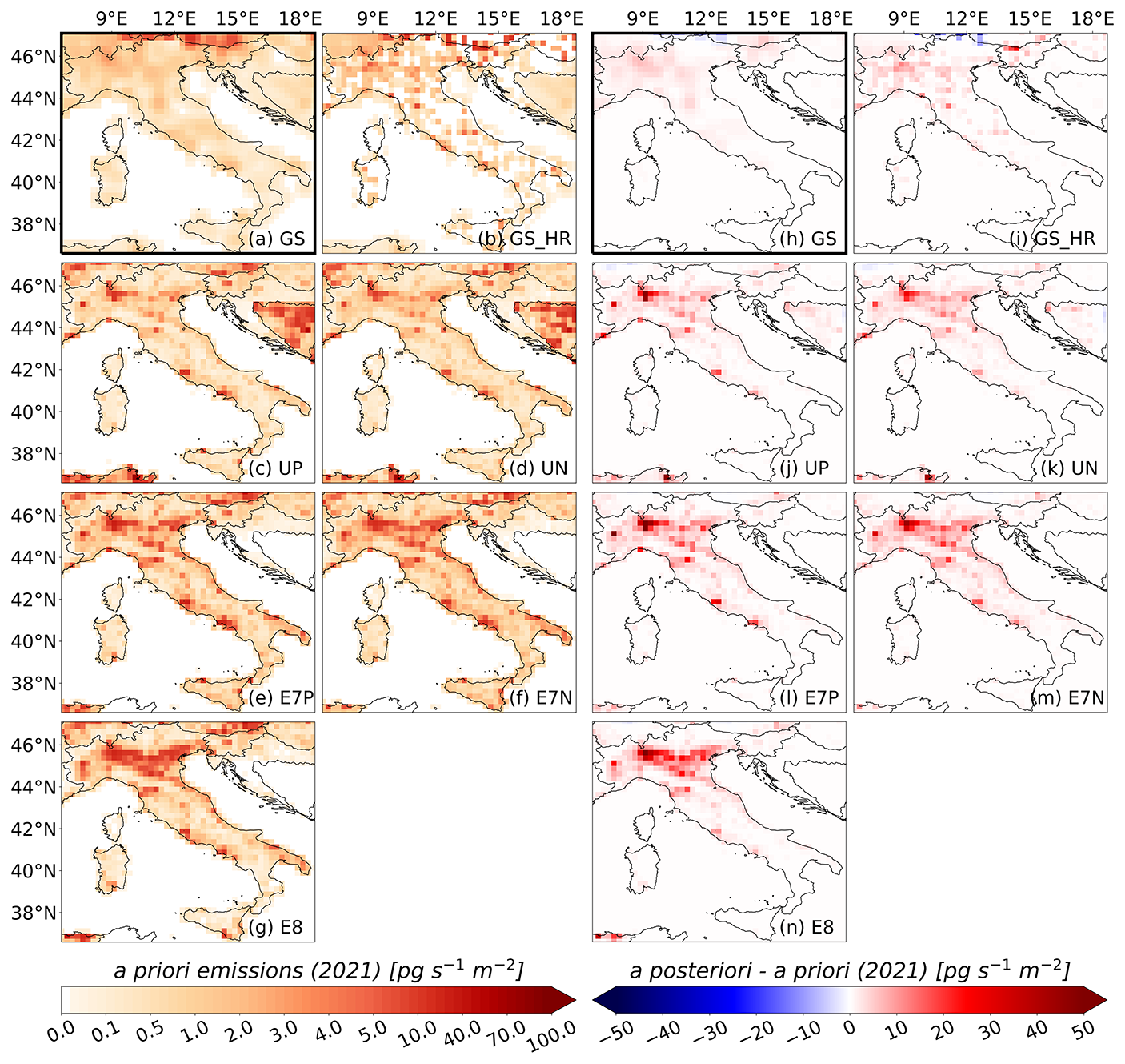 • a priori emissions: We use 7 different a priori emission fields based on the inventories of GAINS, the UNFCCC reports and EDGAR (see Sect. 2.3).