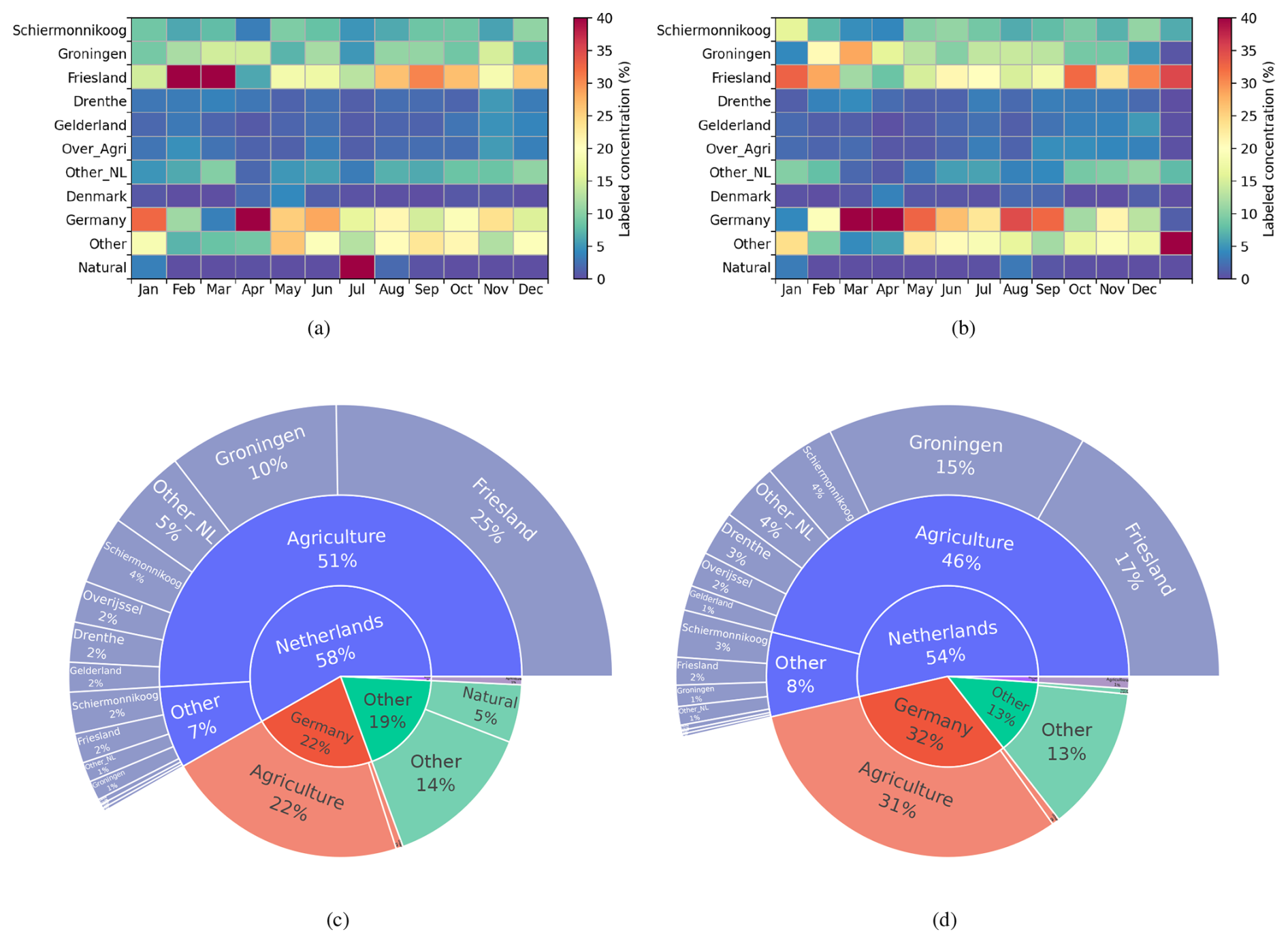 Each emission source is further classified into two sectors: agricultural and non-agricultural emissions. This labeling framework enables precise source attribution and allows us to quantify the relative impact of various regions and sectors on ammonia concentrations over Schiermonnikoog. Detailed results are presented in Sect. 3.1.2.