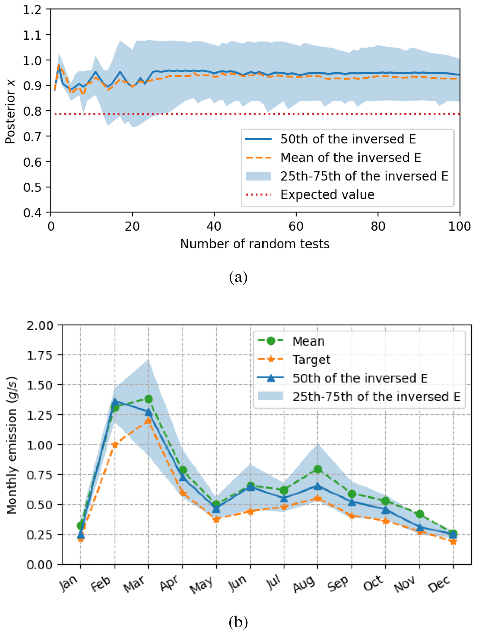 To better understand the inversion process, we conducted a series of controlled tests using simulated observations. These tests were based on high-resolution hourly data, which were subsequently averaged into monthly values to align with the temporal scale of the MAN measurements. This setup enabled us to quantify observational uncertainties and assess how synthetic measurements can enhance the spatial and temporal coverage of the current monitoring network.