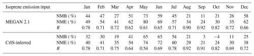 3.2 Evaluation of CrIS-inferred isoprene emission