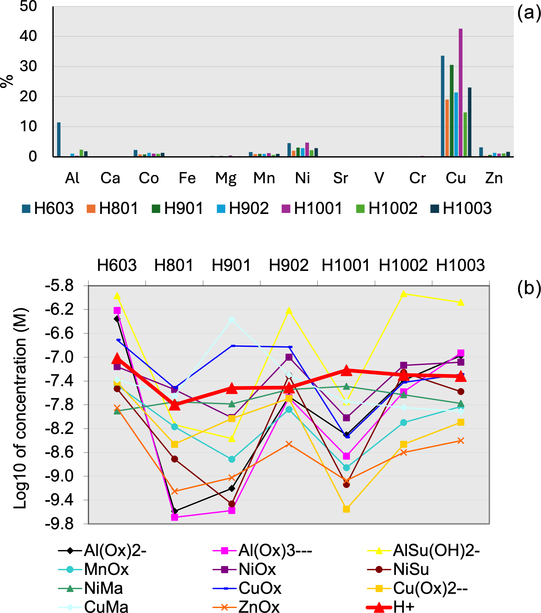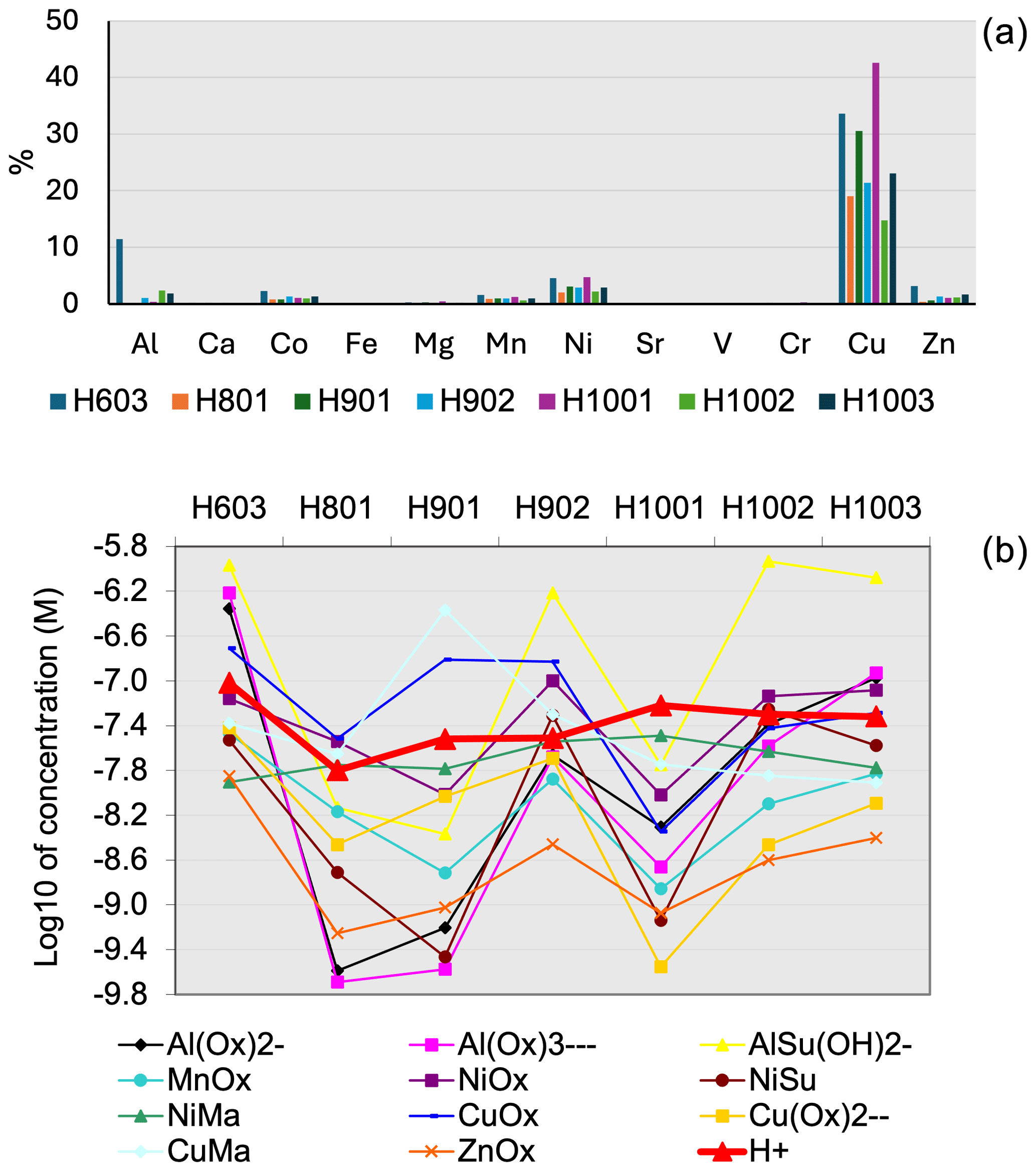 Unlike Visual MinteQ, PITMAP does not explicitly calculate the amount of precipitated solids. Speciation of metals obtained by Visual MinteQ and PITMAP for three fog samples (H603, H901, and H1002) was qualitatively equal, with minor differences being observed only for species at very low concentrations () (see Sect. S1 in the Supplement).