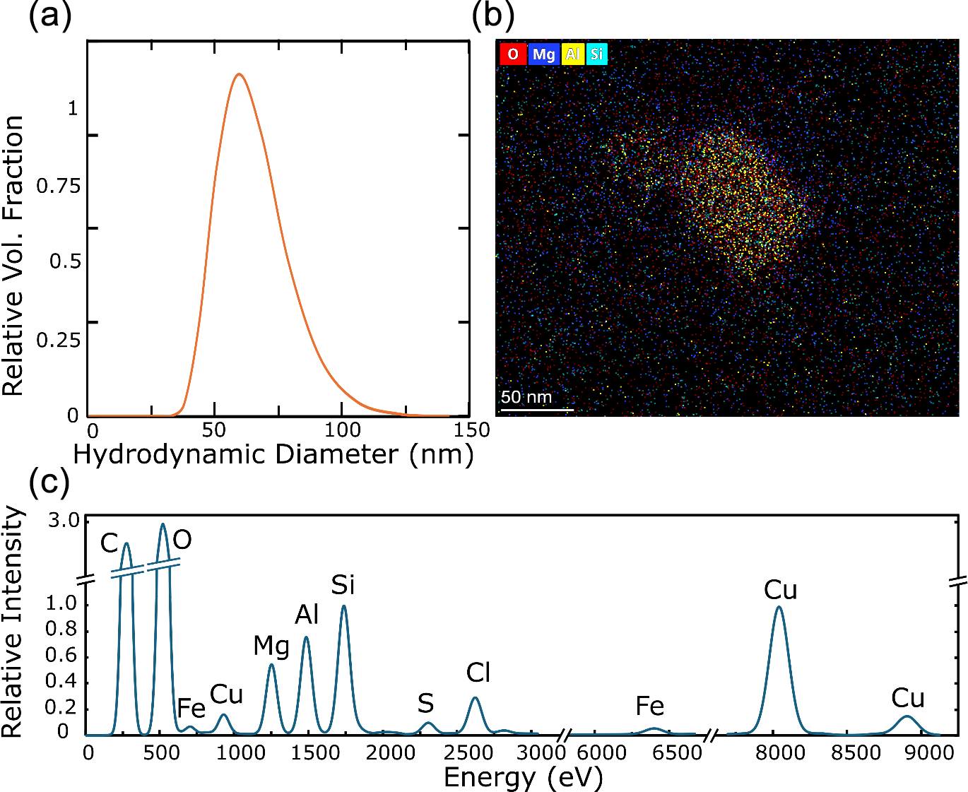Fog samples were prepared in the same manner for TEM. A 35 µL droplet of the suspension was deposited onto a TEM grid (Cu–C, 300 mesh) before blotting off the excess with filter paper. A Thermo Scientific (FEI Company) Talos F200X G2 TEM was used to capture images of the nanoparticles in the fog samples. Energy dispersive X-ray spectroscopy (EDS) was used to identify chemical elements occurring within the aforementioned nanoparticles and to perform elemental mapping within a nanoparticle to understand the distribution of elements. A Super-X EDS detector system with four windowless silicon-drift detectors was utilised for EDS analysis.
