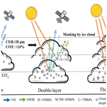 To reduce these biases, Teng et al. (2020) developed a novel multilayer retrieval algorithm that leverages differential absorption across four shortwave infrared channels (0.87, 1.61, 2.13, and 2.25 µm). This method enables simultaneous retrievals of COT and CER for both upper ice and lower liquid layers in ice-over-water cloud systems, significantly improving the agreement between simulated and observed reflectance. More recently, Teng et al. (2023) further advanced this framework by incorporating additional spectral constraints, thereby enhancing the robustness of multilayer cloud retrievals under complex atmospheric conditions. Despite these advances, major challenges remain. In particular, uncertainties remain in how vertical variations in cloud structure – such as inhomogeneity, overlap, and alignment – affect satellite retrievals of COT and CER. Neglecting these variations can bias simulated radiative effects and heating profiles, underscoring the need for better representation of vertical structure in retrieval algorithms and climate models (Wang et al., 2021).