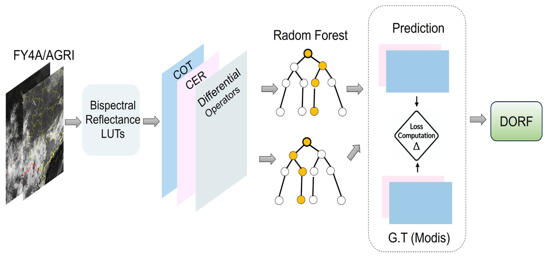 Figure 3Schematic of the DORF model for COT and CER prediction based on FY4A/AGRI observations.