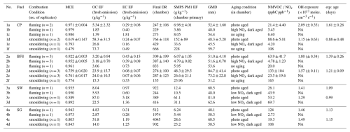 Table 1List of chamber experiments with detailed parameterization of combustion and aging conditions (mean ± standard deviation).