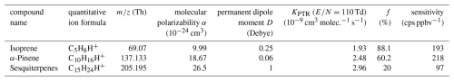 Pagonis, D., Sekimoto, K., and de Gouw, J.: A library of proton-transfer reactions of H3O+ ions used for trace gas detection, Journal of the American Society for Mass Spectrometry, 30, 1330–1335, 2019.
