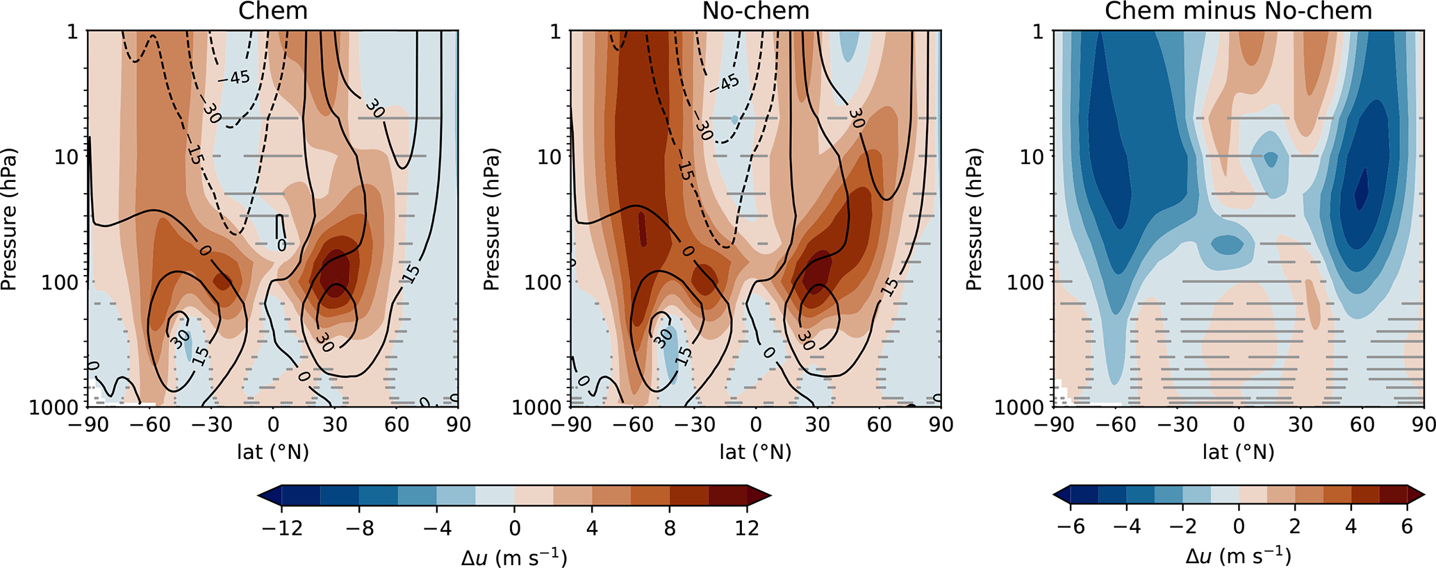 Haase, S. and Matthes, K.: The importance of interactive chemistry for stratosphere–troposphere coupling, Atmos. Chem. Phys., 19, 3417–3432, https://doi.org/10.5194/acp-19-3417-2019, 2019. a