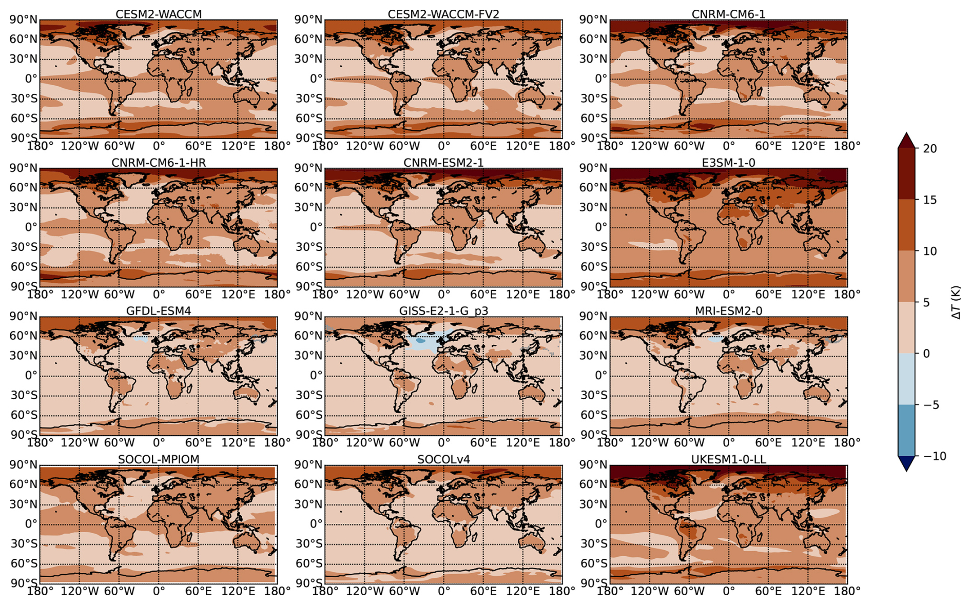 Considering the limited number of models analyzed in the past, it is necessary to compare the ozone response and associated climate feedback across more models and additional idealized scenarios (including transient experiments). This is now possible given that the number of models employing interactive chemistry schemes has substantially increased (by a factor of three) in the last Coupled Model Intercomparison Project Phase 6 (CMIP6) (Keeble et al., 2021) compared to the previous Phase 5 (Chiodo et al., 2018).