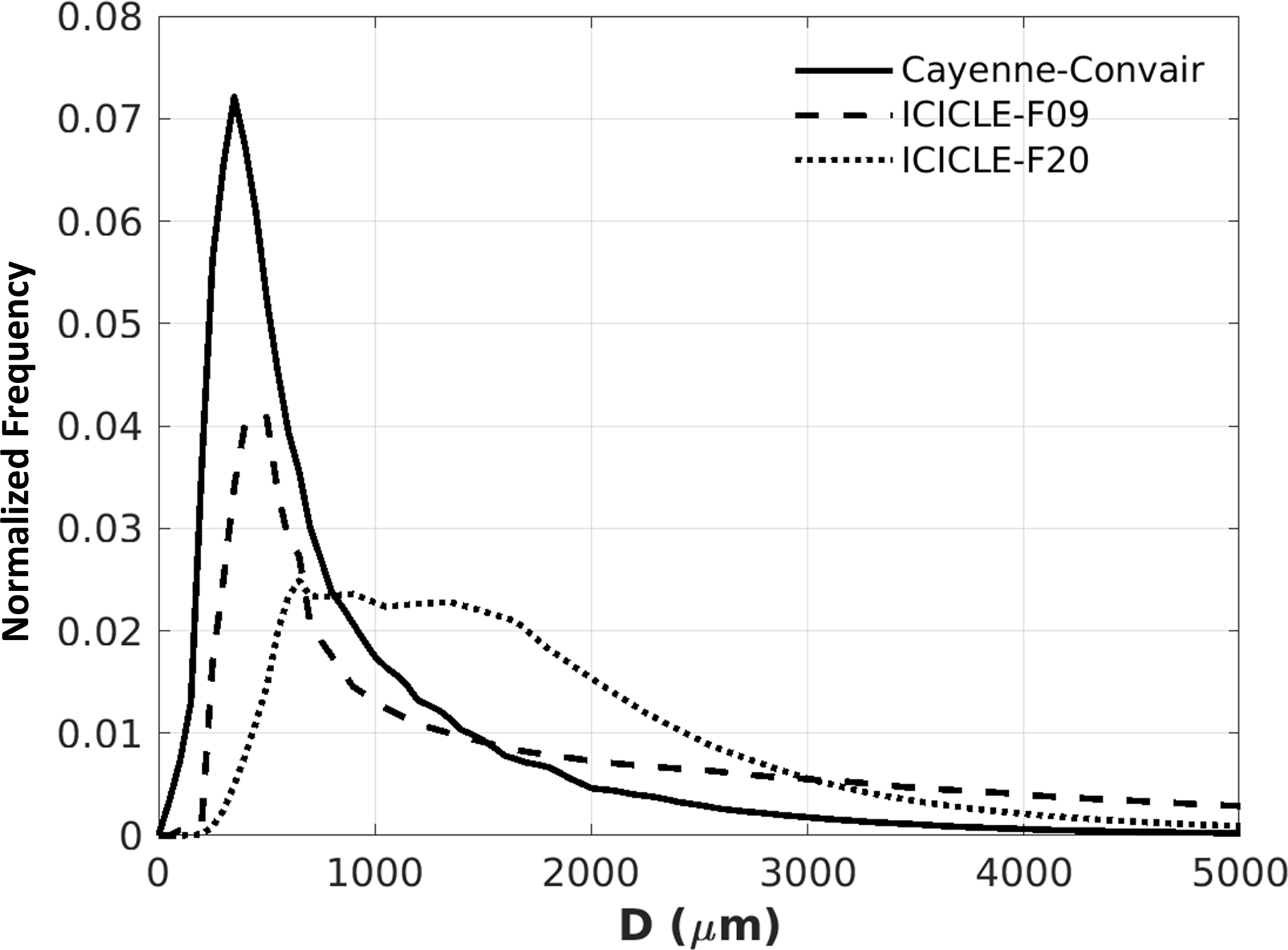 - Ice particle size distribution for tropical and mid-latitude winter cases