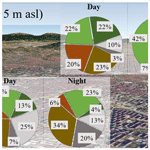 This component was more abundant in the cold period campaign following an opposite trend than the above-described Regional secondary component that dominated in the warm period. In the elevated site, the Fresh secondary component was predominant in the daytime samples, which is in agreement with favoured photochemical reactions and nucleation processing (Alier et al., 2013; Dall'Osto et al., 2013). However, the high scores also observed at night indicate a conservation of this aerosol and ozone in the upper layers.