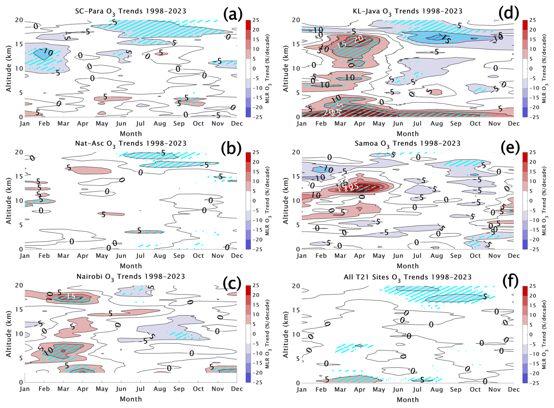 All datasets used in this study are openly and publicly accessible. V06 SHADOZ data are available at https://doi.org/10.57721/SHADOZ-V06 (NASA Goddard Space Flight Center (GSFC) SHADOZ Team, 2019). IAGOS and SHADOZ HEGIFTOM data are available at https://tropo.gsfc.nasa.gov/shadoz/SHADOZ_PubsList.html. Trends in table (*.csv) format are available at https://tropo.gsfc.nasa.gov/shadoz/SHADOZ_PubsList.html (NASA/Goddard Space Flight Center SHADOZ Team, 2025). OMI/MLS data are available at https://acd-ext.gsfc.nasa.gov/Data_services/cloud_slice/new_data.html (NASA/Goddard Space Flight Center OMI Team, 2025).
