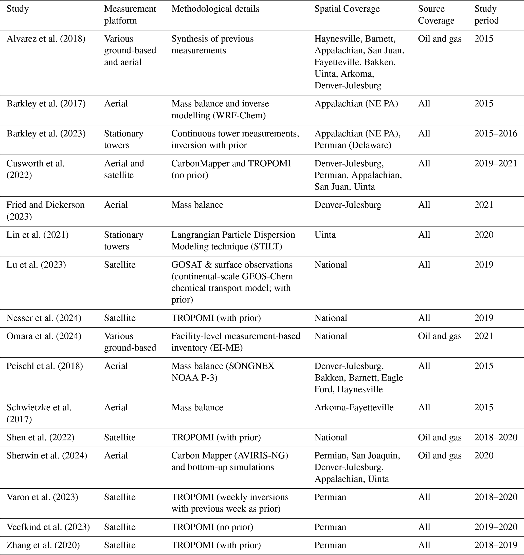 Warren, J. D., Sargent, M., Williams, J. P., Omara, M., Miller, C. C., Roche, S., MacKay, K., Manninen, E., Chulakadabba, A., Himmelberger, A., Benmergui, J., Zhang, Z., Guanter, L., Wofsy, S., and Gautam, R.: Sectoral contributions of high-emitting methane point sources from major US onshore oil and gas producing basins using airborne measurements from MethaneAIR, Atmos. Chem. Phys., 25, 10661–10675, https://doi.org/10.5194/acp-25-10661-2025, 2025.