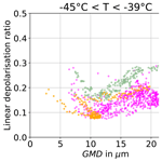 To correlate the linear depolarisation ratio to the particle size at cirrus temperatures, the following conditions are applied: