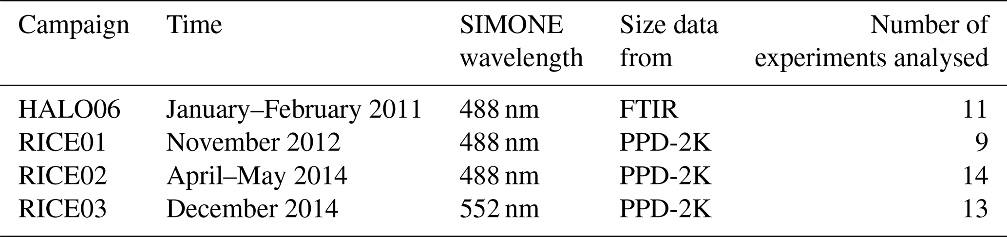 Table 1Campaigns that are used for the analysis of the linear depolarisation ratio.