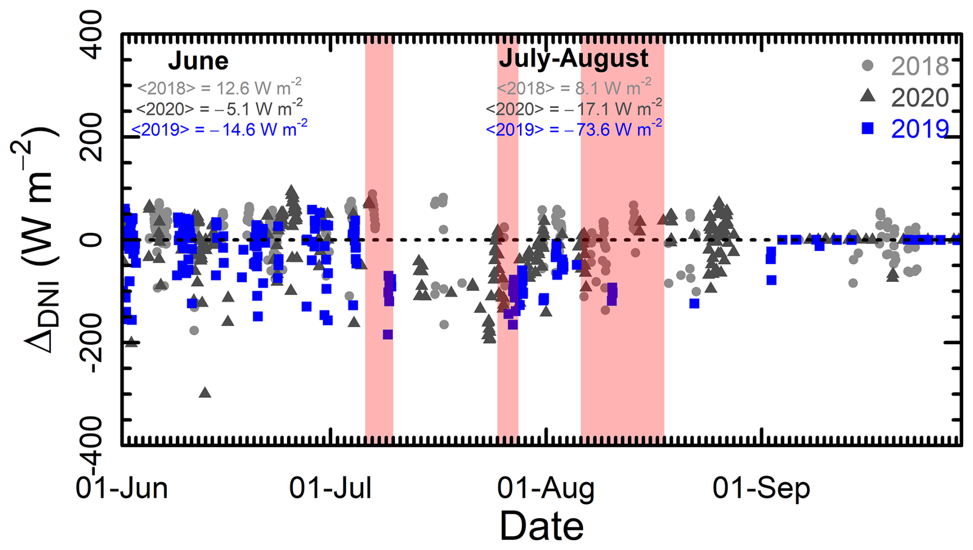 The hourly anomaly (ΔDNI) for the hourly DNI values has been calculated with respect to a reference value (DNIref), as shown in Eq. (2):