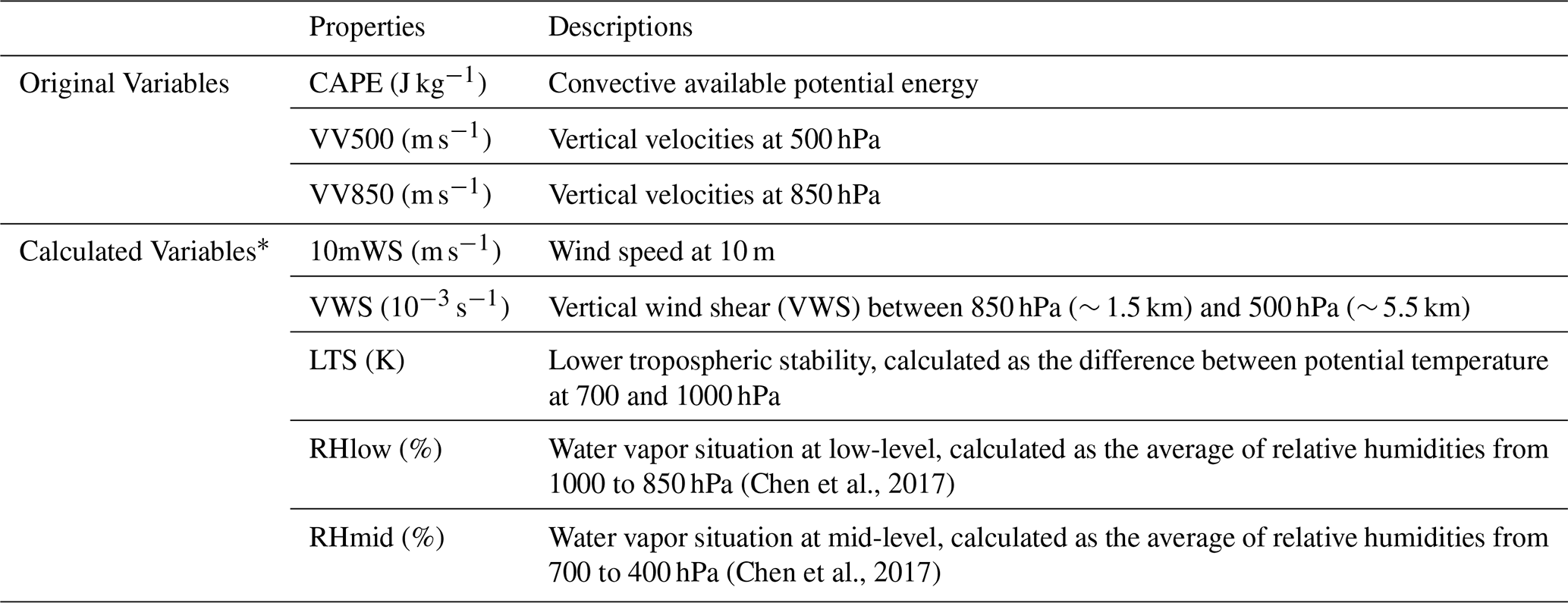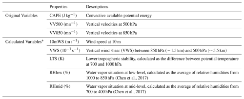 In addition, a set of meteorological variables (Table 3) are used to analyze the influence of meteorological conditions on aerosols affecting cloud and precipitation, which are obtained from the fifth generation European Centre for Medium-Range Weather Forecasts (ECMWF) atmospheric reanalysis of the global climate (ERA5) with high spatial and temporal resolutions (0.25° and 1 h, respectively) (Hersbach et al., 2020). They are matched to the closest PS pixel spatiotemporally. The average of all pixels within one PS is then used to represent the corresponding meteorological field.