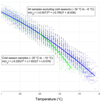 To better represent the INP temperature spectra accounting for the seasonality of biological contributions, parameterization equations were fitted as polynomials for samples from other seasons (April–November, Eq. 1) and cold seasons (December–March, Eq. 2) separately (Fig. 9), as follows,