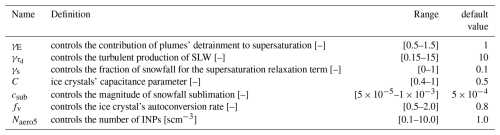 Table 1Name, definition and units, range of acceptable values and default value for the adjustable parameters kept for the PPE exercise.
