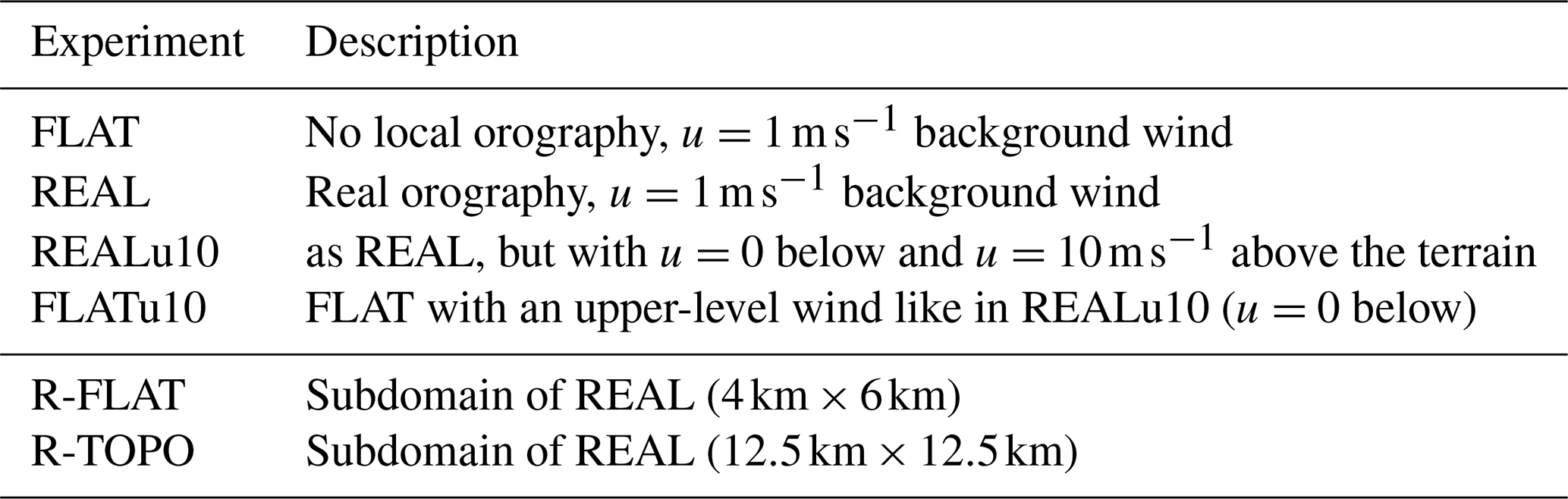 Table 1List of the experiments and the subdomains. R-TOPO and R-FLAT refer to the subdomains depicted in Fig. 1c.