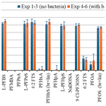 Figure 1 shows concentration of individual PFAS measured in the TSP fraction for the PFAS-only (Exp 1–3) and PFAS with Pseudomonas fluorescens-seeded (Exp 4–6) experiments.