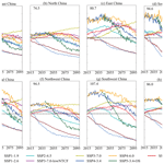 In summary, projections from the CMIP6 models suggest that mitigating surface O3 pollution across China will require not only reducing greenhouse gas emissions to moderate future climate change but also implementing enhanced controls on O3 precursor emissions (including CH4). Under scenarios with pronounced climate change impacts, such as SSP3-7.0 and SSP5-8.5, the stringency of controls on key O3 precursors, particularly NMVOCs and NOx, beyond 2050 is expected to lead to divergent regional responses in long-term surface O3 trends.