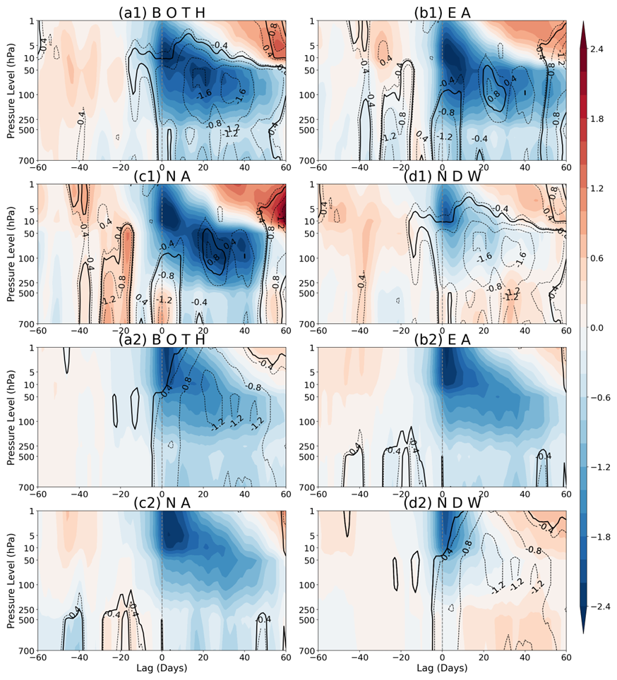 Yang, P., Bao, M., and Ren, X.: Influence of preconditioned stratospheric state on the surface response to displacement and split sudden stratospheric warmings, Geophys. Res. Lett., 50, e2023GL103992, https://doi.org/10.1029/2023GL103992, 2023.