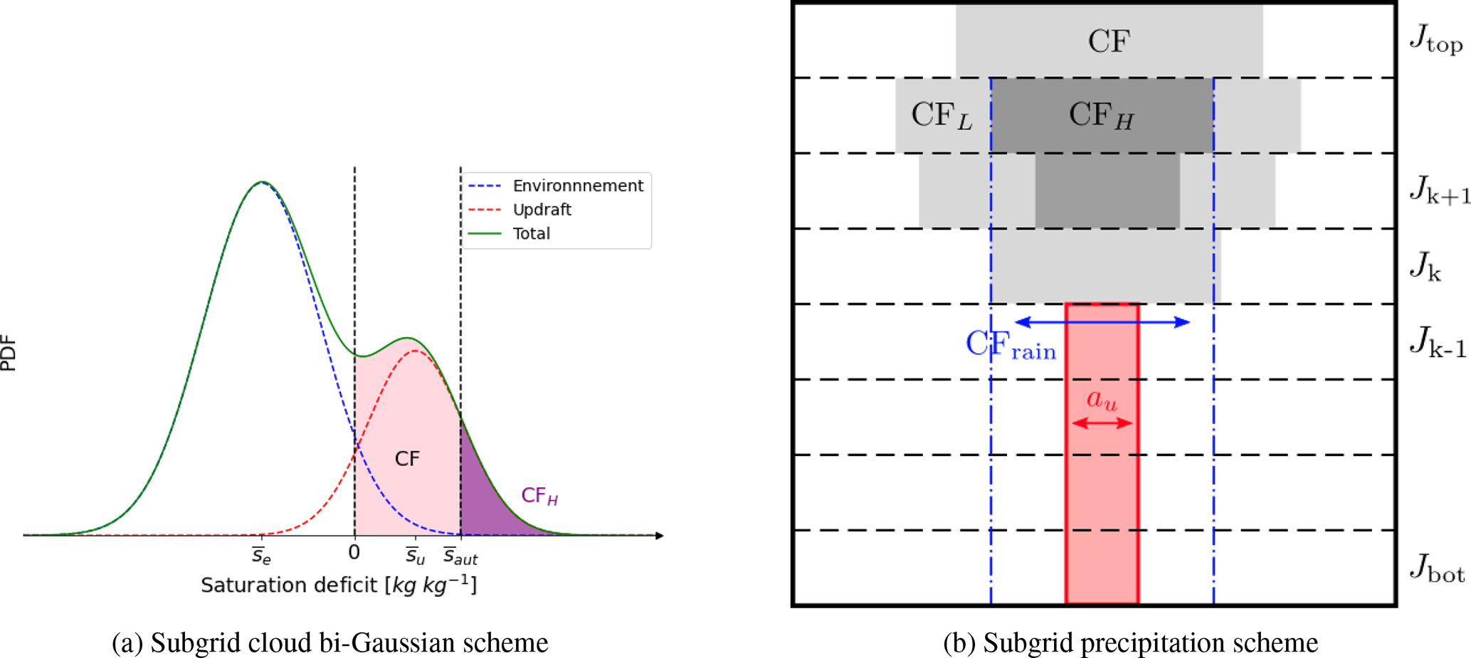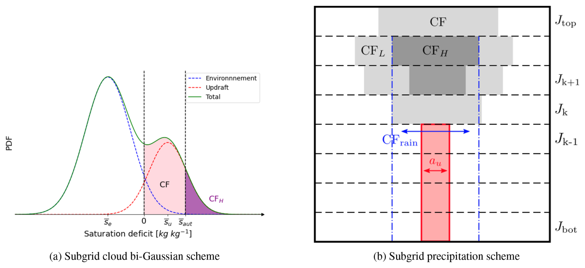 The subgrid saturation adjustment cloud condensation scheme is based on the saturation deficit variable s, firstly proposed by Mellor (1977) for warm phase, and extended to mixed-phase clouds for Meso-NH by Chaboureau and Bechtold (2002) (CB02):