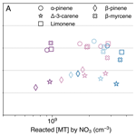 Dam, M., Draper, D. C., Marsavin, A., Fry, J. L., and Smith, J. N.: Observations of gas-phase products from the nitrate-radical-initiated oxidation of four monoterpenes, Atmos. Chem. Phys., 22, 9017–9031, https://doi.org/10.5194/acp-22-9017-2022, 2022.