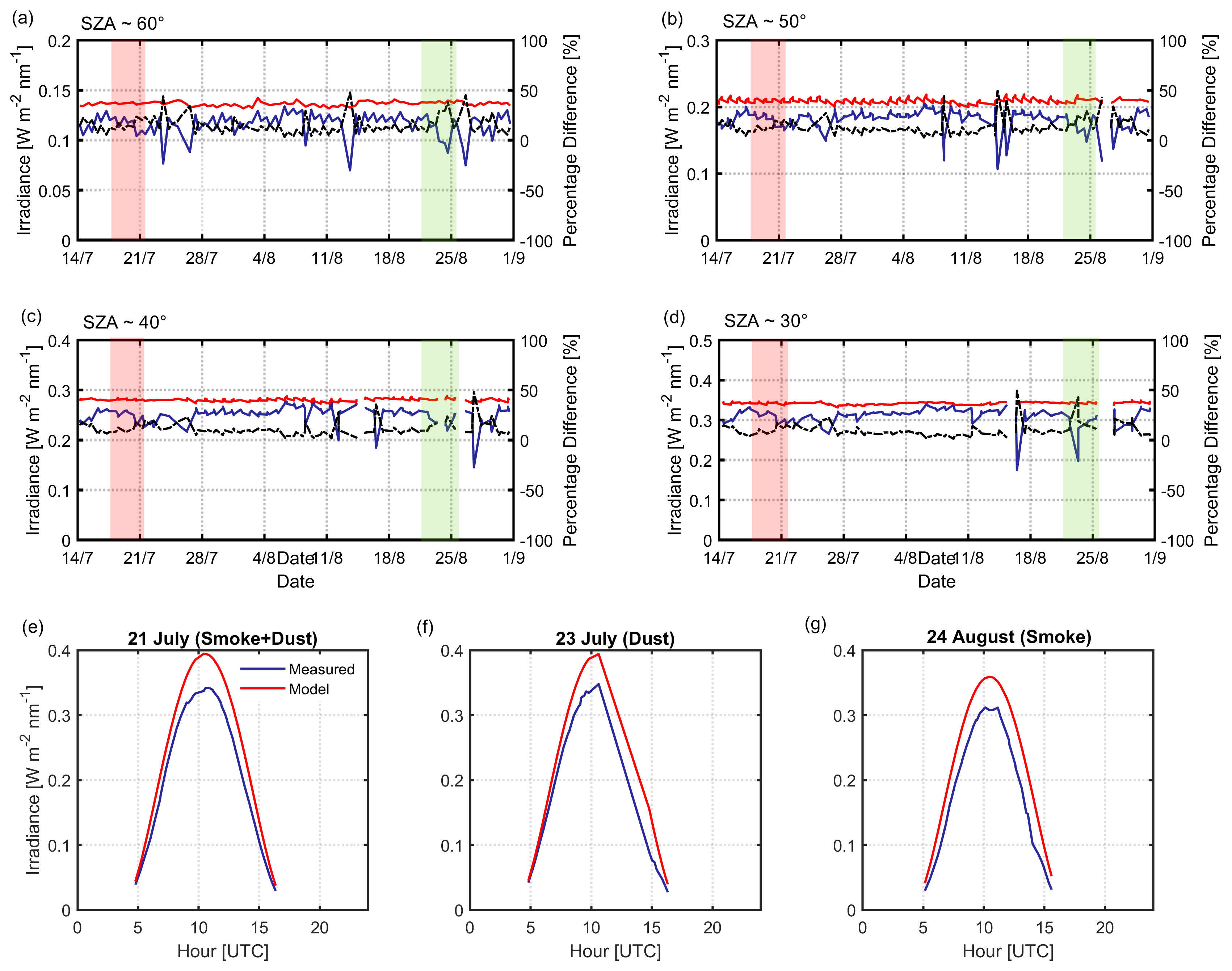 Climatological profiles of atmospheric molecules corresponding to mid-latitude summer (Anderson et al., 1986) and the extraterrestrial spectrum proposed by Kurucz (1994) were used for all simulations. More detailed discussion for the UV-B modelling and the conditions that ensure the comparability between the measured and modelled irradiances can be found in Masoom et al. (2023).