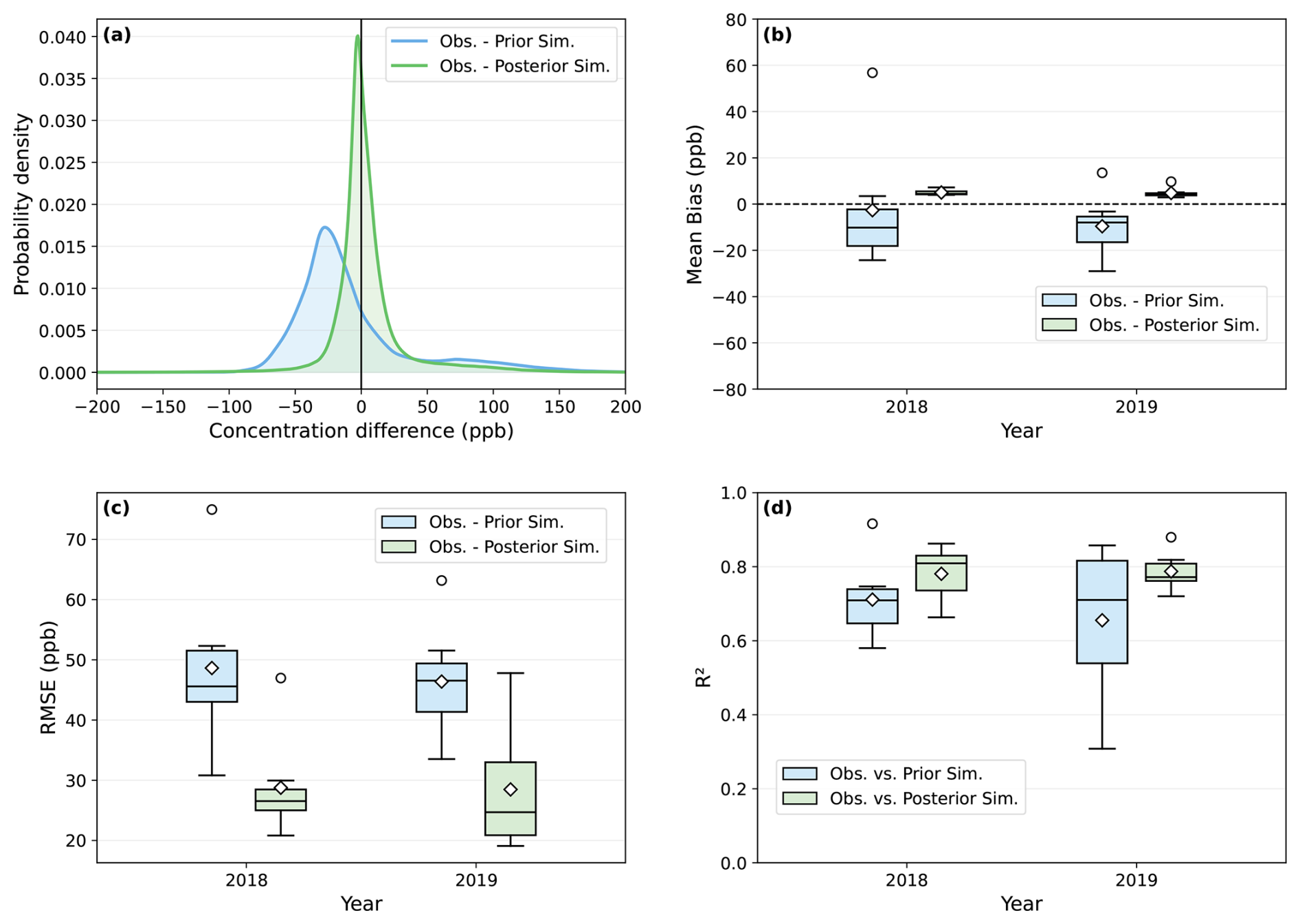 Hence, Υmod (= XCH4,mod) is used for the model-observation comparisons and inversion analyses. i.e., in this study, Υmod represents WRF-GHG XCH4 simulations.