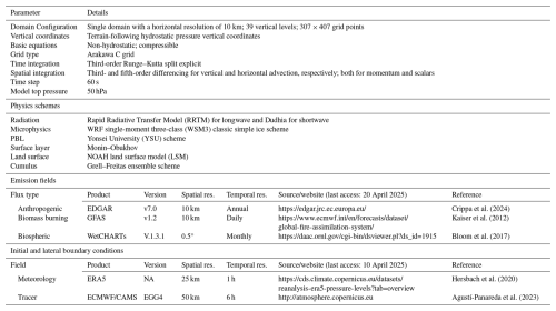 Table 1WRF-GHG model configuration.