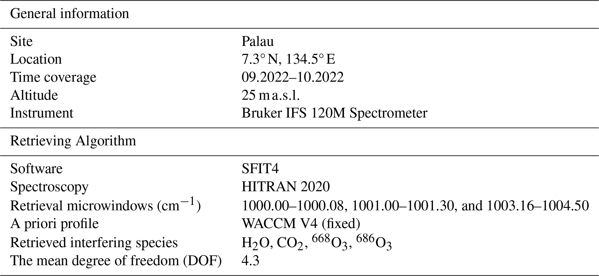Table 1Information of FTIR ozone measurement in Palau.