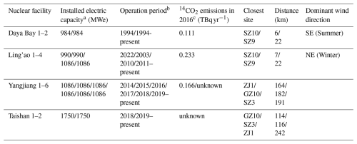 Zhou, Z., Li, P., Cheng, Z., Li, J., Li, J., Chen, D., Zhang, T., Xiong, X., Sa, R., Ma, S., and Zhang, G.: Selection of background stations and values for urban atmospheric Δ14CO2 observation: a case study in Shenzhen, Geochimica, 53, 309–319, 2024 (in Chinese).