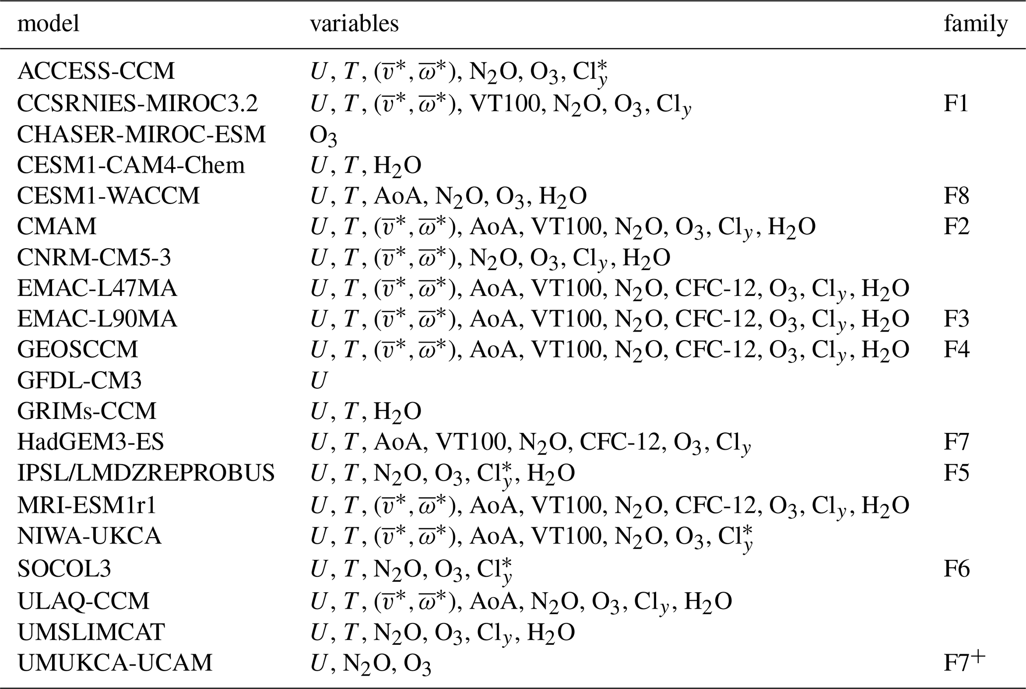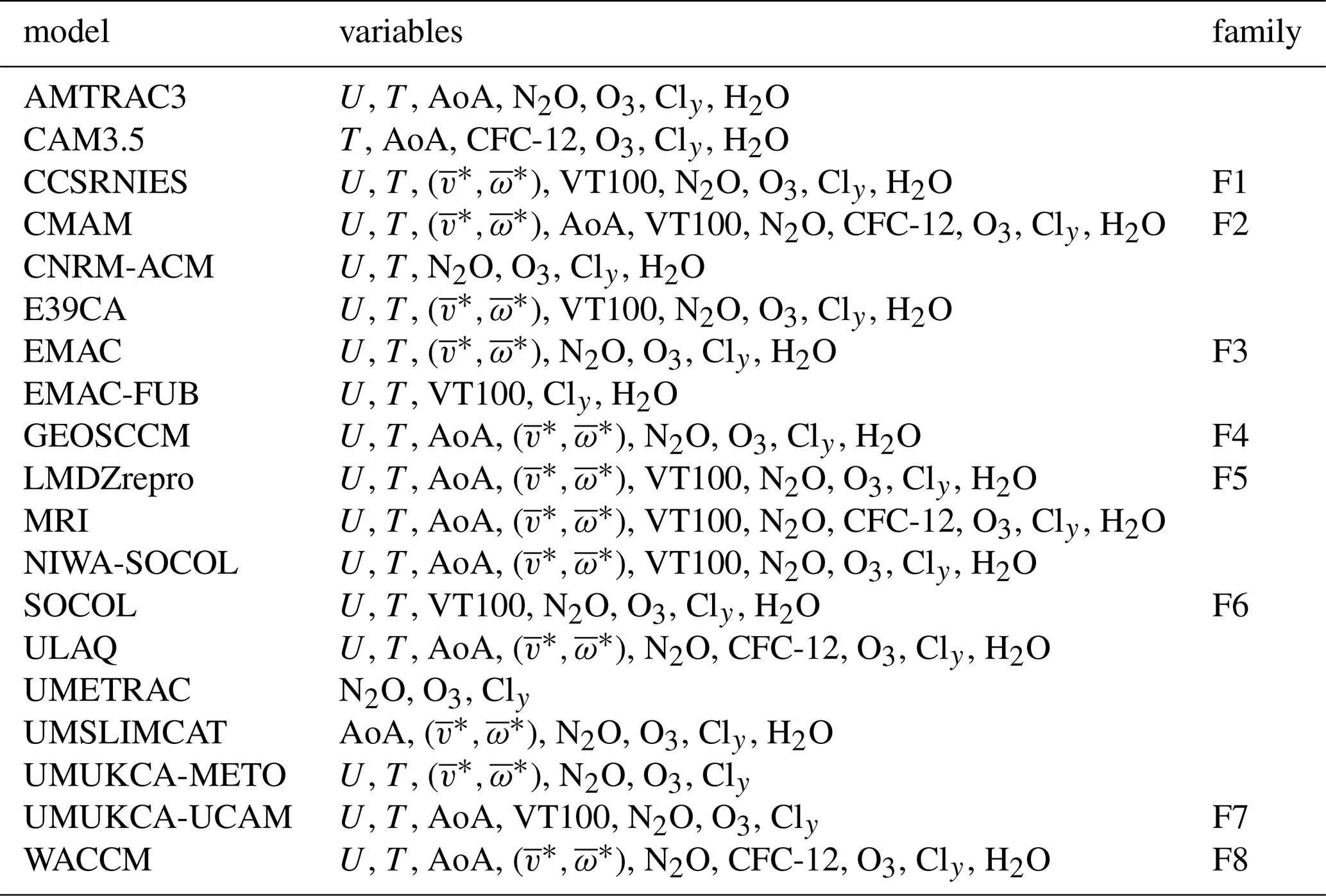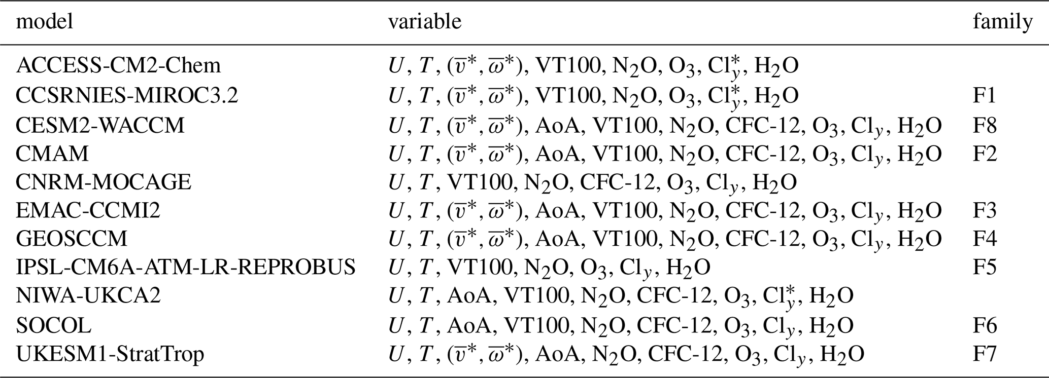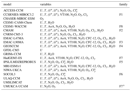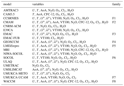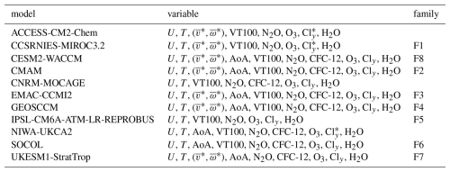 Table 2The 20 CCMI-1 models and variables used in this study.