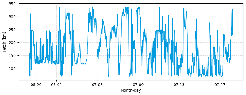 Surfactants are surface-active compounds, molecules, or biomolecules. They are ubiquitous in the ocean and often highly concentrated in coastal waters through biological production and terrestrial inputs (Mustaffa et al., 2020; Sabbaghzadeh et al., 2017; Wurl et al., 2011), suppressing gas exchange by damping surface turbulence and forming an additional diffusion barrier (McKenna and McGillis, 2004; Pereira et al., 2016). In contrast, wave breaking enhances gas transfer, especially for low-soluble gases, by introducing bubbles as an exchange pathway in addition to the interfacial exchange route (Bell et al., 2017; Blomquist et al., 2017; Dong et al., 2025; Woolf, 1997). Wave breaking is strongly impacted by wind fetch (defined as the distance over which wind acts on the water surface), because limited fetch suppresses wave breaking and bubble generation (Fairall et al., 2006; Kunz and Jähne, 2018; Ocampo-Torres and Donelan, 1995; Prytherch and Yelland, 2021; Woolf, 2005). Understanding how these mechanisms influence air–sea gas exchange is essential for regional (coastal) carbon budgets and for developing robust monitoring, reporting, and verification (MRV) frameworks to support mCDR strategies (e.g., Ho et al., 2023).